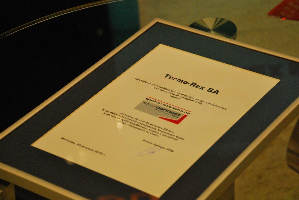 Na początek grudnia br. zaplanowane zostało NWZA Termo-Rex S.A. Chociaż znajduje się ona na NewConnect dopiero od końcówki września tego roku, to wśród uchwał przewidzianych na to zgromadzenie znalazł się już punkt odnośnie głosowania nad dopuszczeniem i wprowadzeniem jej instrumentów na rynek regulowany.