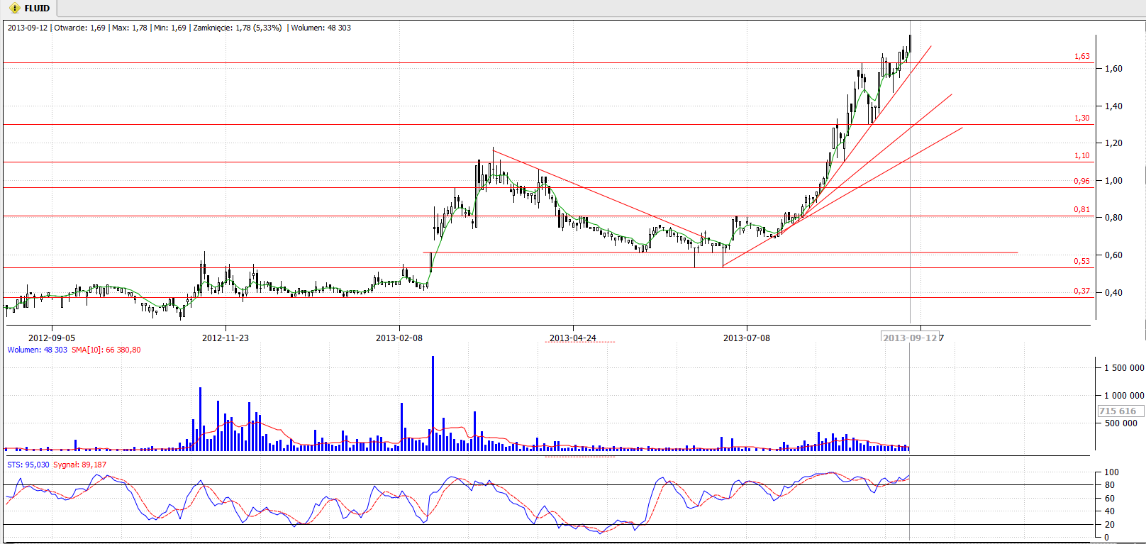 Obrót walorami Fluid S.A. wyniósł 225 tys. zł (aprecjacja o 7,9 proc., do 1,92 zł), a papierami Vedia S.A. - 157 tys. zł. Te ostatnie zostały jednak nieznacznie przecenione, mianowicie o 2,08 proc.