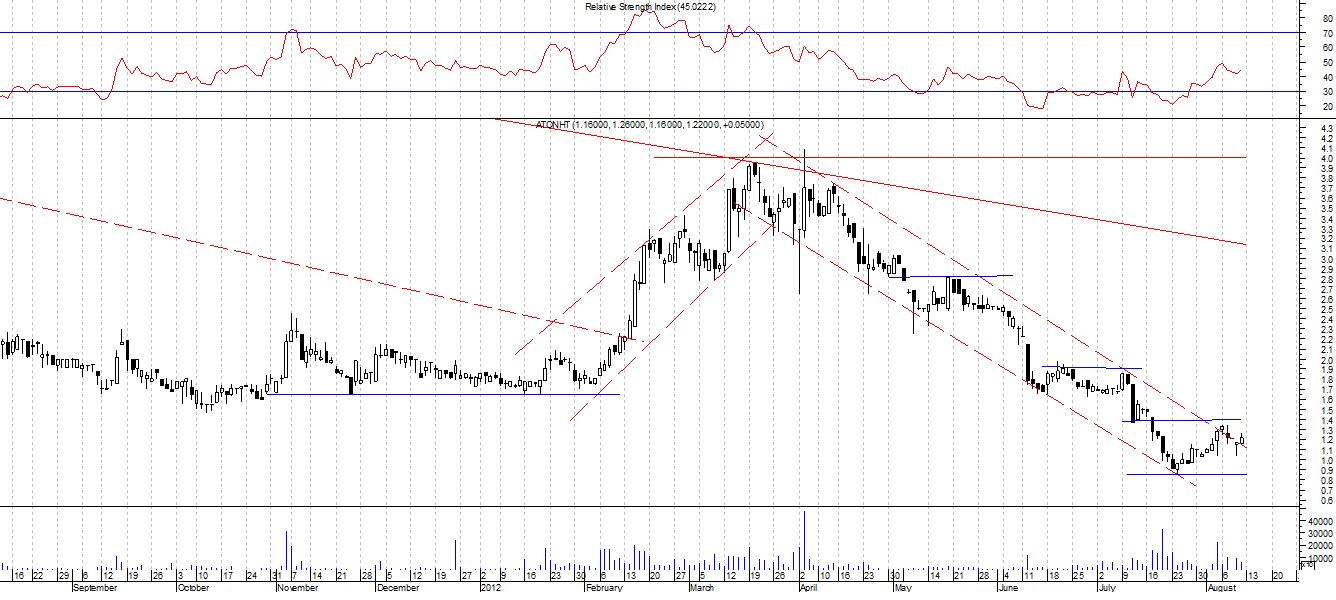 Aton-HT S.A. ponownie jest blisko wygenerowania sygnały kupna. Ruch potrzebuje teraz potwierdzenia. Opór na 1,38 zł, wsparcie na 0,85 zł. EGB Investments S.A. przebił opór na 2,12 zł. Opór na 2,4 zł, wsparcie na 2,12 zł. E-Kancelaria S.A. w długoterminowym trendzie wzrostowym, opór na 3,82 zł, wsparcie na 2,76 zł. Internity S.A. przetestowała dolne ograniczenie trendu spadkowego, ale poziom się obronił. Opór na 7 zł, wsparcie na 4,74 zł. Mabion S.A. ponownie przetestował opór na 17,47 zł, ale przebicie nadal potrzebuje potwierdzenia. Opór na 17,47 zł, wsparcie na 15,28 zł. Telestrada S.A. przetestowała dolną granicę trendu wzrostowego i zbliża się do oporu na 13,09 zł. Wsparcie na 10,5 zł.