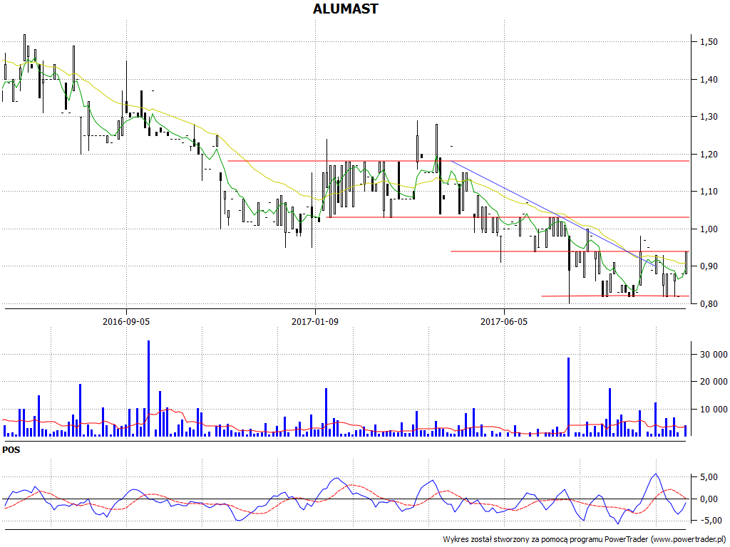 Aktualnie mamy coś w rodzaju konsolidacji, ten stan rzeczy trwa od końcówki lipca. Można uznać, że w tym trendzie bocznym rozmyła się wcześniejsza tendencja spadkowa. Za istotne wsparcie wypada uznać 0,82 zł. Opory to 0,94 zł i 1,03 zł.